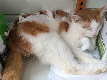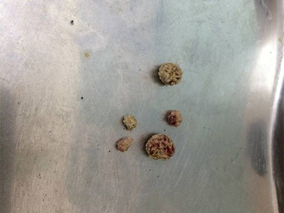 主诉:该猫精神沉郁,食欲下降,好躺猫砂盆,尿频且尿量减少,疼痛呻吟,清理猫砂时可见少量血迹。临床病理检查血液中白细胞升高,尿液中有结晶,X光片中可见膀胱中有结石阴影。与主人分析病情后同意实施膀胱结石手术,目前已拆除导尿管自主排尿且无异常。